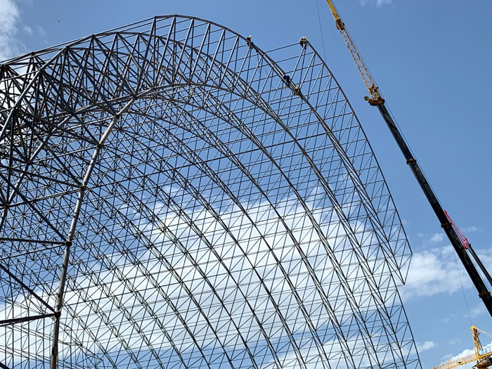 (2)网架加工前应对现场尺寸进行复测,确认无误后方可进行加工、安装;网架制作、运输、安装应遵守《空间网格结构技术规程》JGJ7-2010、《钢网架周口螺栓球节点》JG/T 10-2009、《钢网架周口螺栓球节点用高强度螺栓》 GB/T 16939-2016、《周口钢结构周口工程周口施工规范》 GB50755-2012、《周口钢结构周口工程周口施工质量验收标准》 GB50205-2020。